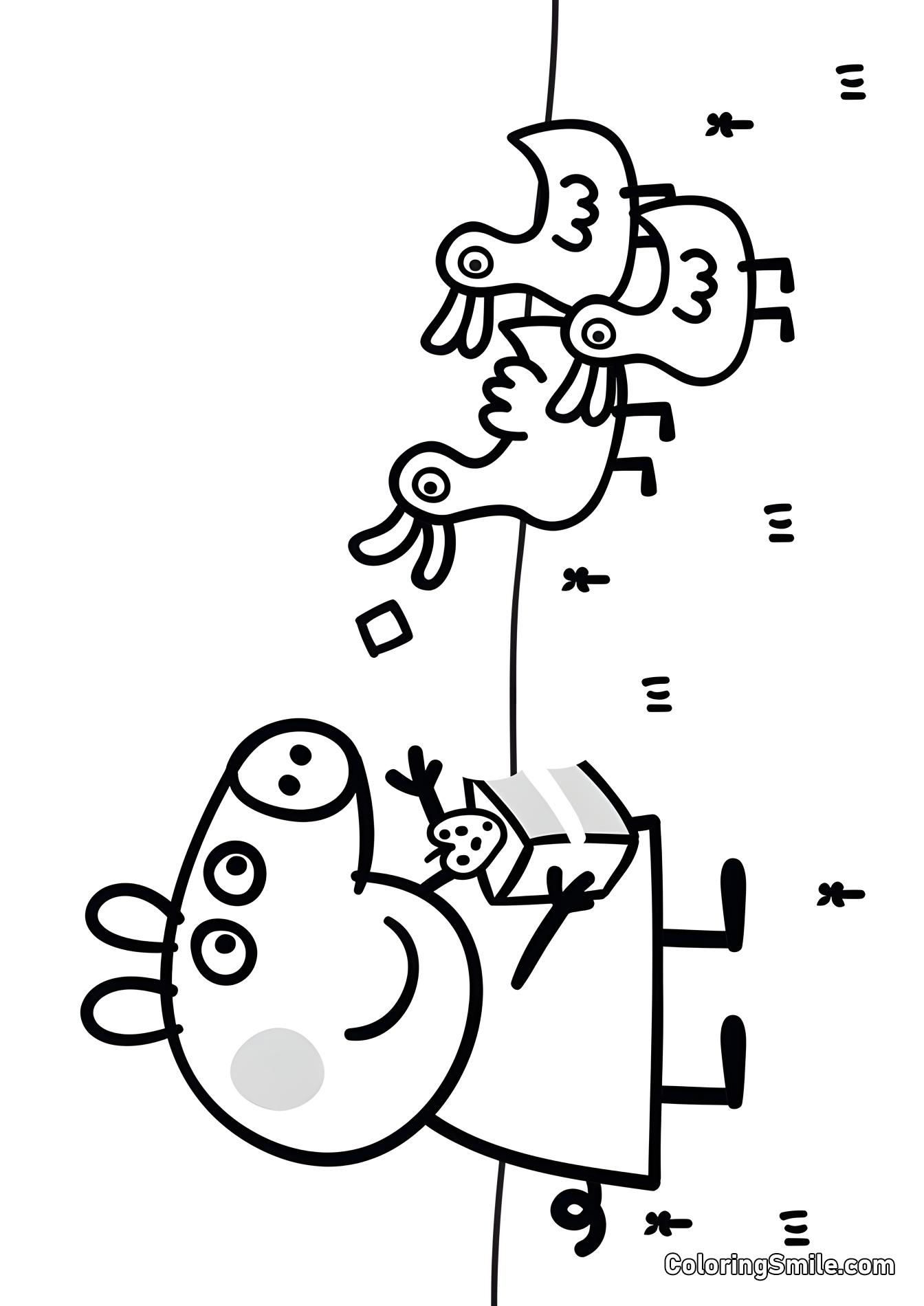 Nasze darmowe kolorowanki Peppa Pig przedstawiają urocze czarno-białe obrazki Twoich ulubionych postaci z hitowego programu, w tym: